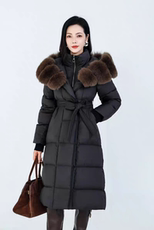 2025冬新款高端皮草大狐狸毛领羽绒服女系带过漆长款加厚保暖外套