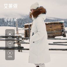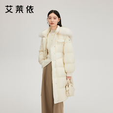 艾莱依大毛领长款过膝羽绒服女2025秋冬新款双层门襟御寒保暖外套