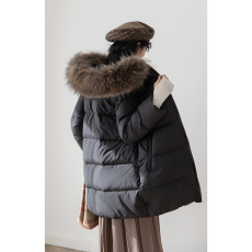 白鸭绒羽绒服女90绒大毛领连帽小个子中长款时尚加厚气质保暖外套