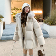 韩版羽绒棉服女款2025新款冬季中长款大毛领宽松显瘦过膝外套