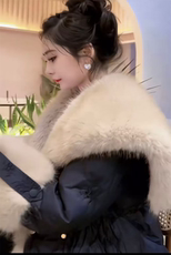 新款狐狸大毛领中长款宽松显瘦羽绒服女韩系温柔保暖外套2025冬款
