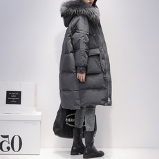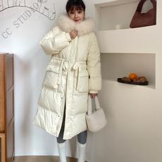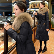 韩系复古中长款保暖羽绒服女加厚真狐狸大毛领宽松显瘦过膝外套潮