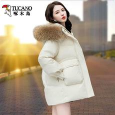 啄木鸟白鸭绒羽绒服女中长款冬装2025新款冬季加厚保暖大毛领外套