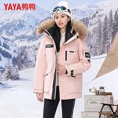 鸭鸭工装风羽绒服女2025新款大毛领中长款时尚保暖鹅绒外套M