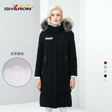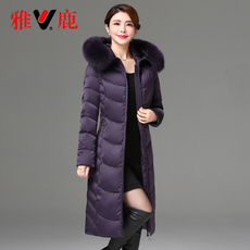 圣羽博雅新款中老年修身过膝长款妈妈装羽绒服女大毛领加厚外套