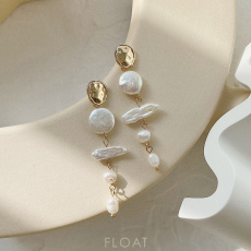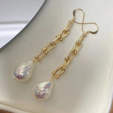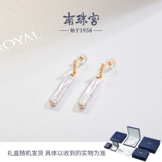 南珠宫925银 个性小众银条淡水珍珠耳环 白色长款耳钉 C-E009SD-J