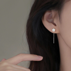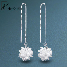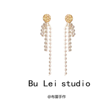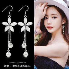 925银针网红啦啦花花朵耳环女气质仙女流苏珍珠耳坠简约长款耳饰