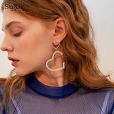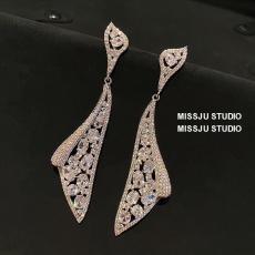 简约满钻高级感法式优雅扇形镶钻奢华气质礼服长款锆石耳环银针