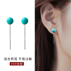 银耳环999纯银转运珠耳环女气质长款流苏耳坠足银防过敏个性耳饰