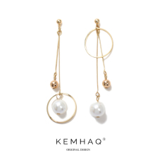 日韩长款耳环不对称圆圈小众气质超仙显瘦纯银耳钉耳夹无耳洞女