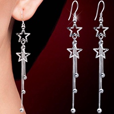 s925纯银耳环女长款圆脸气质流苏新款百搭网红耳坠星星睡觉圆圈