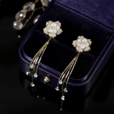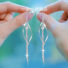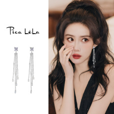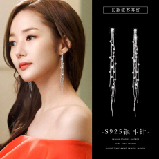 925纯银高级感超仙闪钻银耳环女长款气质网红新款潮耳钉流苏耳坠