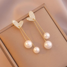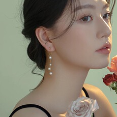925纯银饰品珍珠耳环 长款耳坠 白娘子款 送女友生日礼物