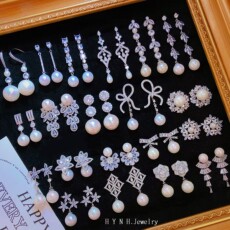 【清冷白玉】清冷温柔感银针耳钉女闪亮锆石长款水滴珍珠耳夹耳环