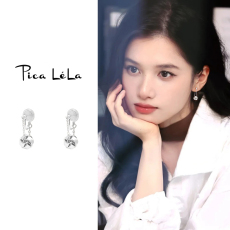 DIY配件S925纯银珍珠耳钩耳环空托星星长款双珠耳勾珠宝玉石银托