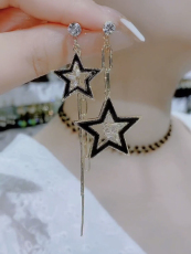 时尚设计感黑色五角星耳环2024新款气质长款显瘦耳坠高级银针耳饰