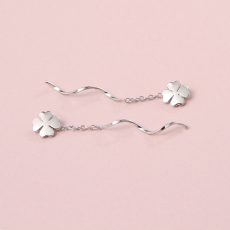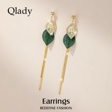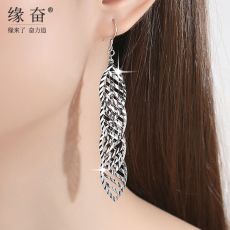 正品9999纯银色耳环女灵动叶子长款流苏耳坠真足耳圈防过敏送妈妈