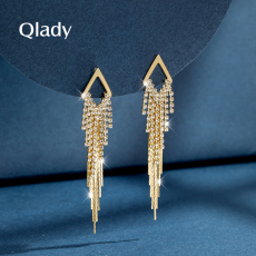 设计感银针锆石超仙耳环长款流苏显脸瘦耳坠小众轻奢时尚百搭耳饰