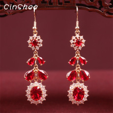 Young亚马逊新款魅力薰衣草紫水晶镶钻锆石耳环 欧美长款耳坠饰品