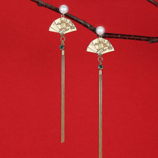 新中式耳坠复古国风扇子耳环女高级感长款竹叶耳线配汉服旗袍耳饰
