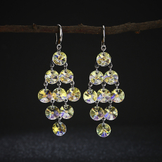 Bulingbuling奥地利水晶流苏耳环s925纯银几何菱形长款耳坠夏季女