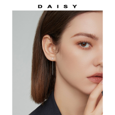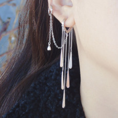 原创设计高级感S925银翎羽滴流苏一体耳环三耳洞连体耳扣长款耳饰