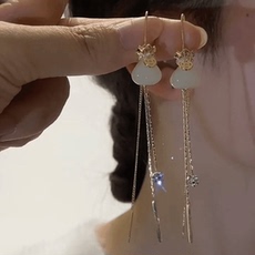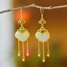 「一池春水」纯银和田玉耳线女款流苏长款国风耳环新中式耳坠耳饰