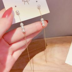 韩国东大门一字珍珠流苏长款耳环时尚气质两戴耳钉饰品女S925银针