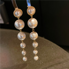 925银针高级感长款珍珠耳环名媛长耳环简约时尚百搭法式走秀耳饰