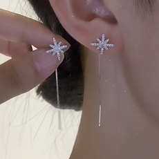 925纯银星星锆石流苏耳坠女2025新款耳环轻奢高级感气质长款耳饰