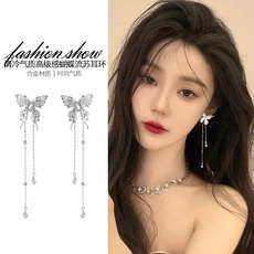 S925银针轻奢小众长款流苏蝴蝶耳环女ins潮高级设计感耳钉耳饰品