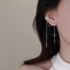 925纯银耳夹女长款流苏耳钉一体式耳骨夹轻奢高级感独特耳环耳饰