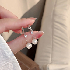 韩国进口气质大小珍珠超仙前后耳堵纯银针耳钉长款珍珠耳坠耳环女
