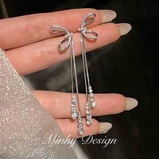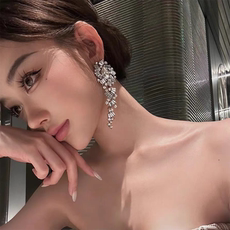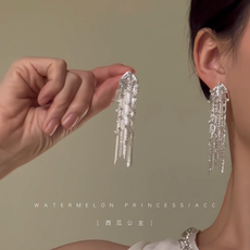 2024新款潮耳饰礼服晚宴耳环新款潮奢华闪钻长款流苏s925银针耳坠