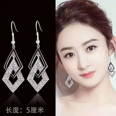 925银针满钻几何三角耳环欧美时尚长款流苏耳坠网红潮个性耳饰女