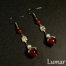 S925纯银蜜蜡血珀耳钩女长款气质超闪耳坠中老年耳环耳饰防过敏