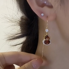 超闪复古咖色精致流苏镶钻长款耳环新款S925银针高级感显脸瘦耳饰