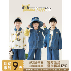 砚台家童装儿童保色牛仔长袖衬衫男童套装2025秋装外套波点衬衣潮