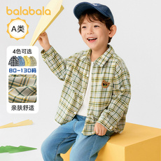 巴拉巴拉宝宝衬衫男童长袖2025新款格子外套秋超柔绒加厚亲肤舒适