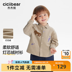 【纯棉灯芯绒】齐齐熊男童衬衫秋装宝宝外套新款儿童长袖衬衣上衣