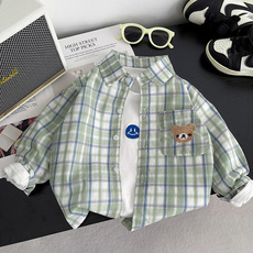 戴维贝拉男童衬衫儿童长袖上衣宝宝纯棉格子衬衣新款男孩外套衣服