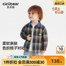 齐齐熊宝宝格子衬衫秋冬装男童外套2025新款儿童保暖长袖衬衣上衣