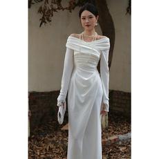 白色长袖连衣裙女2025年秋季新款正式场合巨好看的早秋穿搭裙子