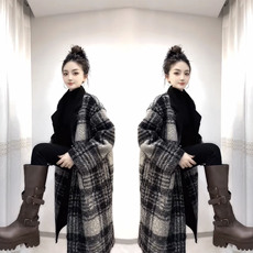 薇语大码女装长款棉服女2025秋冬新款格子长袖高级感宽松风衣外套