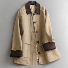 纯棉 半圆原创女装[复古]2026春秋宽松长款长袖两面穿风衣外套女