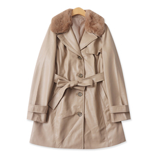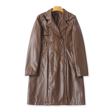 仿羊皮风衣外套 秋冬新款外贸女装西装毛领单排扣长袖中长款33210
