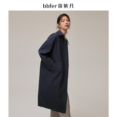 DPLAY【黑标】蓝色风衣春季新款大气英伦风长款外套长袖大衣女
