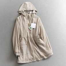 【现货】2025春季新款欧货外套女中长款半拉链抽绳连帽长袖风衣