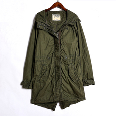 vintage古着日制女士长款港风廓形连帽休闲长袖风衣外套瑕疵款415