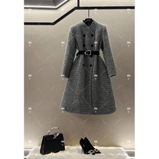刺绣字母翻领毛呢大衣春秋新款长袖双排扣风衣中长款女外套L/15边
